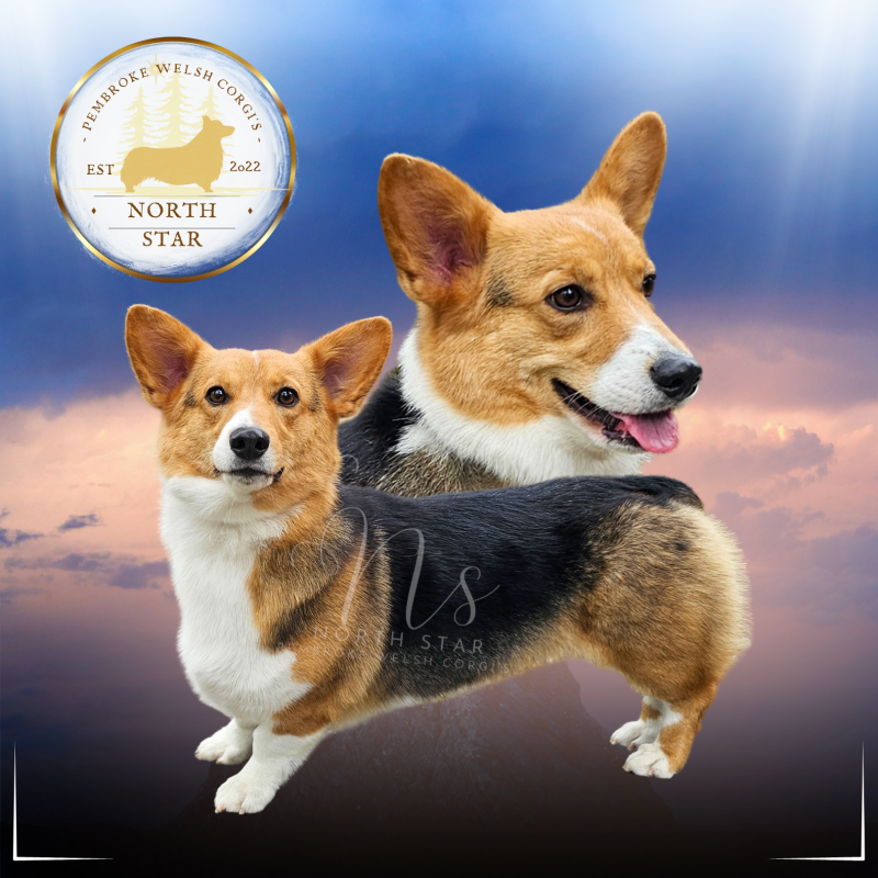 Raised on a farm, Rossi has been exposed to a variety of animals, including geese, chickens, cats, dogs, and cattle, making her well-rounded and familiar with farm life. She thrives in social settings, welcoming visitors with her vibrant and energetic personality. In the summer, she especially adores her time kayaking, enjoying the water and bonding with us outdoors. Rossi is not only a joy to have in our home but also an exceptional example of the Pembroke Welsh Corgi breed.