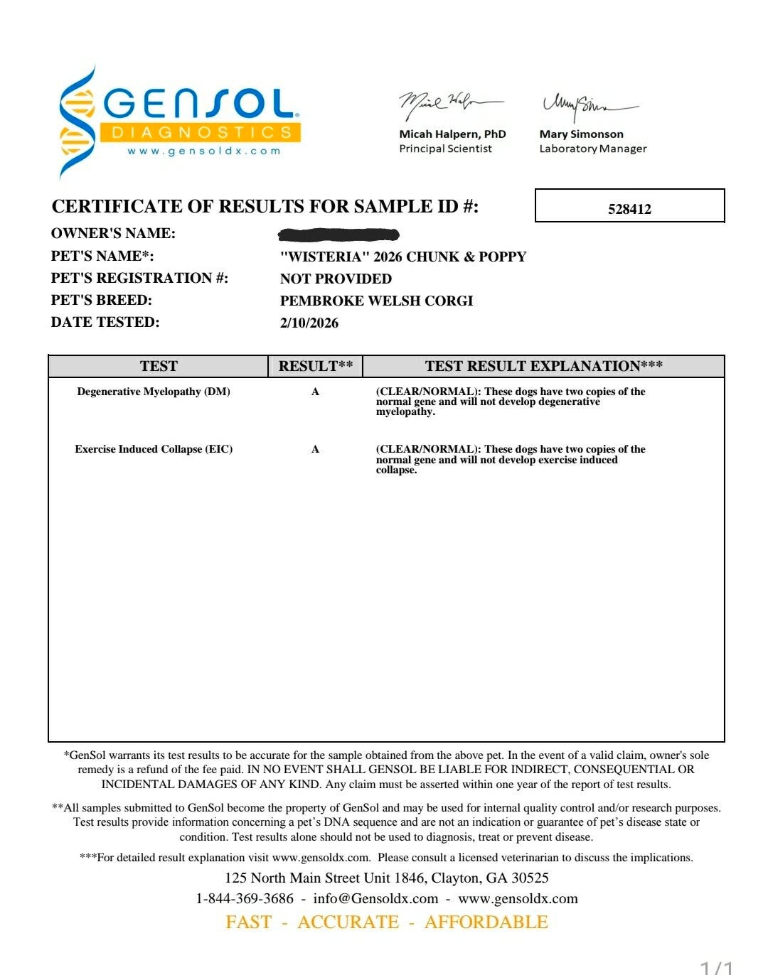 She is triple clear of all tested genetic mutations, giving us great confidence in the health potential she brings to our lines. As she continues to grow and mature, we look forward to completing her OFA health certifications in accordance with breed standards.
